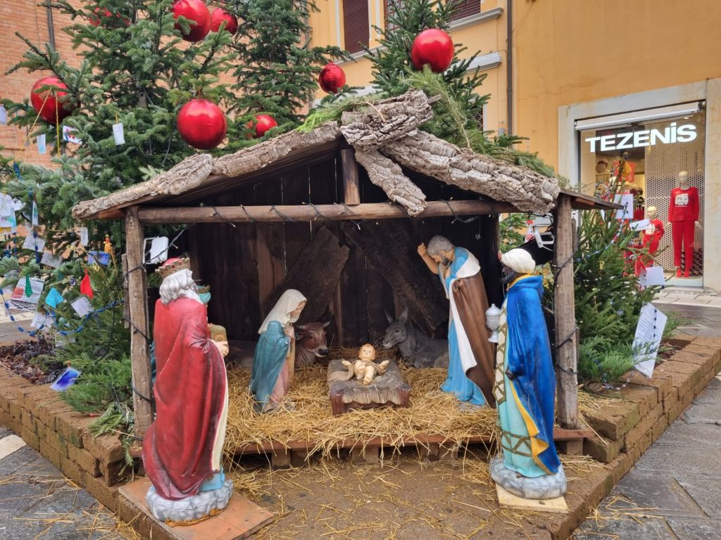 Sono arrivati i Re Magi a completare il presepe della Fondazione Cassa di risparmio di Cesena davanti al Duomo di Cesena.