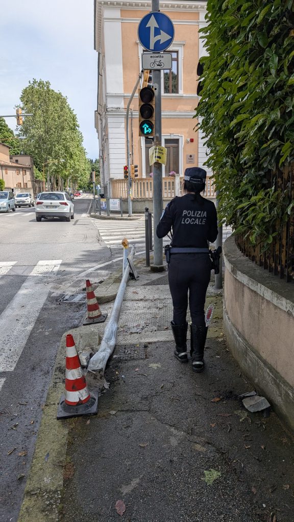 Il conducente di un van Fiat Scudo – come detto da lui stesso – avrebbe accusato un lieve malore e salendo sul marciapiede si è scontrato con un paletto, abbattendolo.