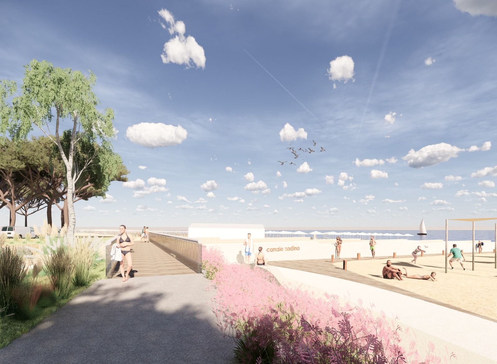 L’obiettivo è quello di valorizzare il fronte mare, riqualificare e mettere in sicurezza il tratto terminale della foce del Canale di Zadina, creare nuovi spazi urbani in cui rendere protagonista la mobilità sostenibile con percorsi ciclo-pedonali, implementare le dotazioni urbane con una particolare attenzione al verde e ad una adeguata illuminazione che renda la zona ancora più sicura. Il progetto avrà un impatto positivo anche per la difesa dalle alluvioni e per la salvaguardia dell’arenile, con sistemi di protezione ambientale della costa e dell’insediamento urbano.