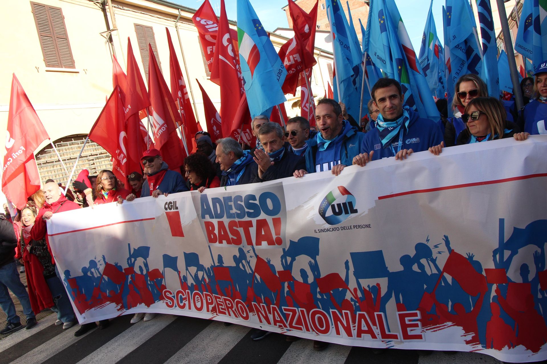 Tante le bandiere rosse e azzurre delle due sigle sindacali davanti al Municipio, dove sono intervenuti, fra gli altri, Massimo Bussandri, segretario generale Cgil Emilia-Romagna ed Emanuele Ronzoni, segretario organizzativo Uil nazionale. Gli organizzatori, in una nota inviata alla stampa, parlano di “oltre 8.000 lavoratrici, lavoratori, pensionate e pensionati sopraggiunti dai territori di Ravenna, Forlì, Cesena e Rimini”.