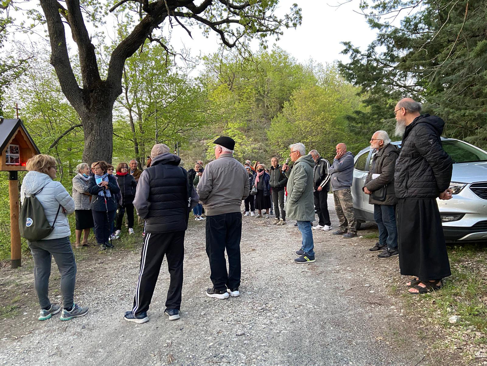 Cinque edicole votive per la badia di Montalto. Chi a piedi, chi in auto e chi con la navetta messa a disposizione delle Misericordie, sono stati una cinquantina i partecipanti all’inaugurazione delle cinque edicole lungo il percorso che collega il palazzo di Montalto alla Badia di San Salvatore in Summano, nel territorio di Sarsina. Le edicole in legno scandiscono le decine di Ave Maria che compongono la preghiera del Rosario. L’appuntamento di preghiera di ieri sera è stato particolarmente dedicato per la pace nel mondo. La preghiera è stata guidata da don Edero Onofri e don Vincenzo Fantini.
