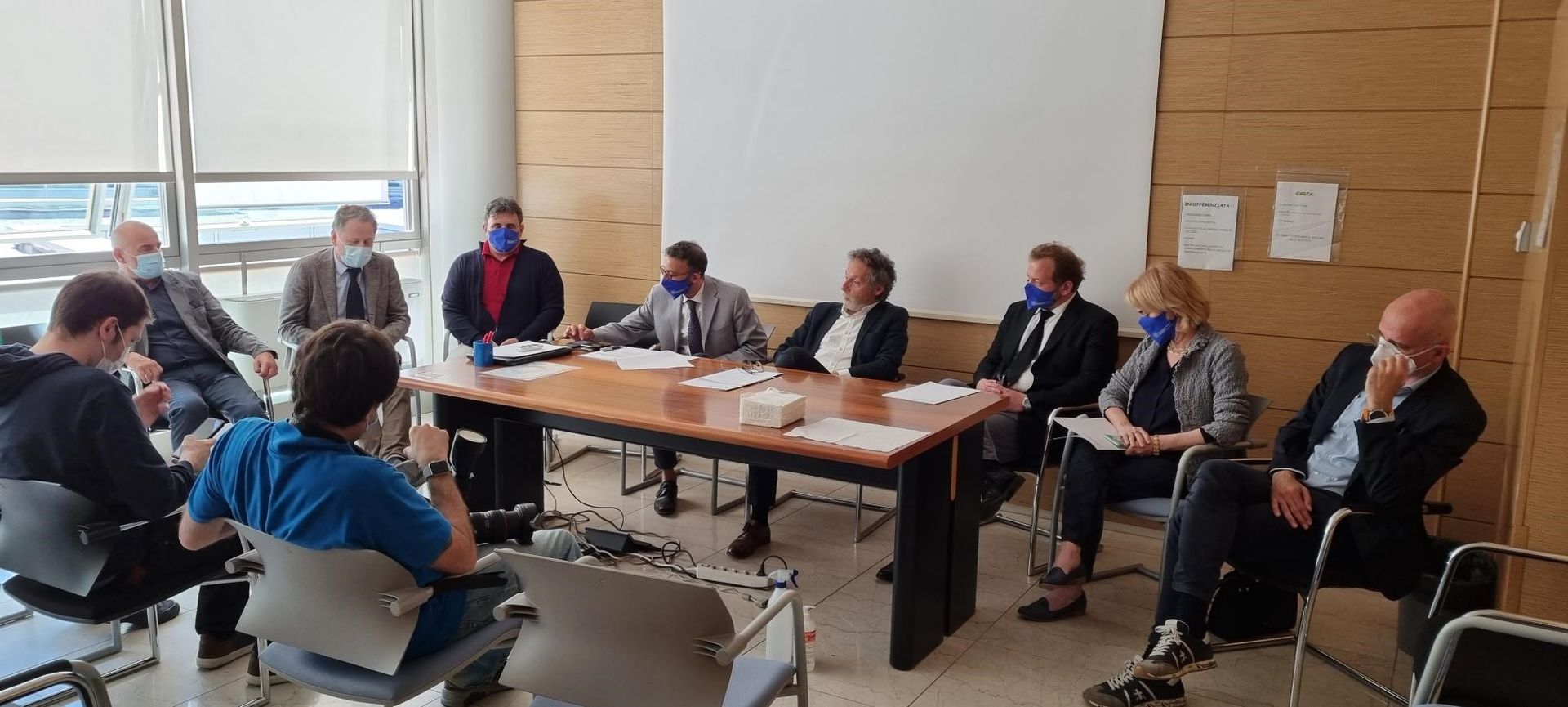 Nella foto in alto, da sinistra, Tiziano Carradori, Francesco Sintoni, Nicoletta Bertozzi, Michele Ziosi, Rino Biguzzi, Fausto Catena, Carlo Lusenti e Mattia Altini.