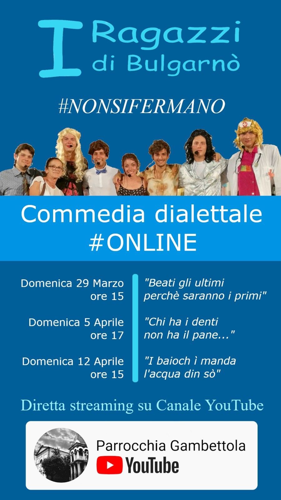 Tre le commedie dialettali proposte #ONLINE, registrazioni delle commedie messe in scena nei tre anni scorsi. I testi sono stati curati da Angela Bersaglieri di Bulgarnò.