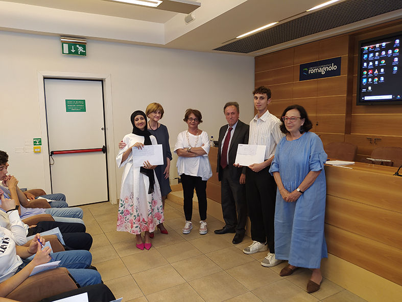 La cerimonia di premiazione si è svolta ieri, martedì 14 giugno nella sala ‘Cacciaguerra’ dell’istituto di credito. A consegnare i premi, messi a disposizione dal Credito Cooperativo Romagnolo, sono stati il presidente dell’istituto di credito Roberto Romagnoli, il presidente dell’associazione Amici della Biblioteca Malatestiana Giordano Conti, la coordinatrice del concorso Bibliotechiamo Elda Salvetti.