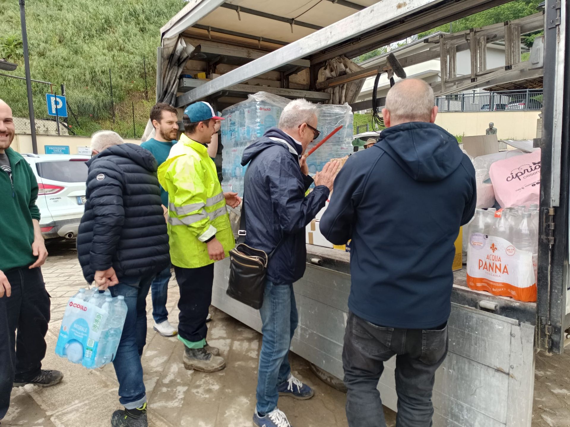 Da subito il paese si è mobilitato: “Martedì mattina 16 maggio la sorgente appena sopra il bar ha iniziato a riversare quantità di acqua e fango esagerata. Tutti gli uomini del paese, che qui siamo tutti attrezzati – racconta Tamara – hanno fatto in modo che l’acqua venisse incanalata di qua e di là dal borgo, e infatti le case non si sono allagate. Eravamo tutti lì, e abbiamo pensato ‘Apriamo il capannone della Pro Loco”. Il capannone è attrezzato per le feste, con cucina, sedie e tavoli. “Lo abbiamo aperto il martedì a pranzo e non siamo più usciti. Qui trascorriamo le nostre giornate e torniamo nelle case solo a dormire. Martedì 16 maggio ci siamo trovati in poco tempo senza servizi: un palo della luce giù, una frana a Linaro ha rotto conduttura del gas, a Ranchio tubazione acqua saltata: ancora non ce ne rendevamo conto, ma in poche ore si è presentato uno scenario apocalittico. Attivato il generatore, primo avvio per poter mantenere carichi i telefoni a disposizione per soccorsi ed emergenze”. La luce è tornata quattro giorni dopo, l’acqua in buona parte del paese lunedì sera. A breve si confida nel ripristino di acqua, luce e gas per il territorio restante.