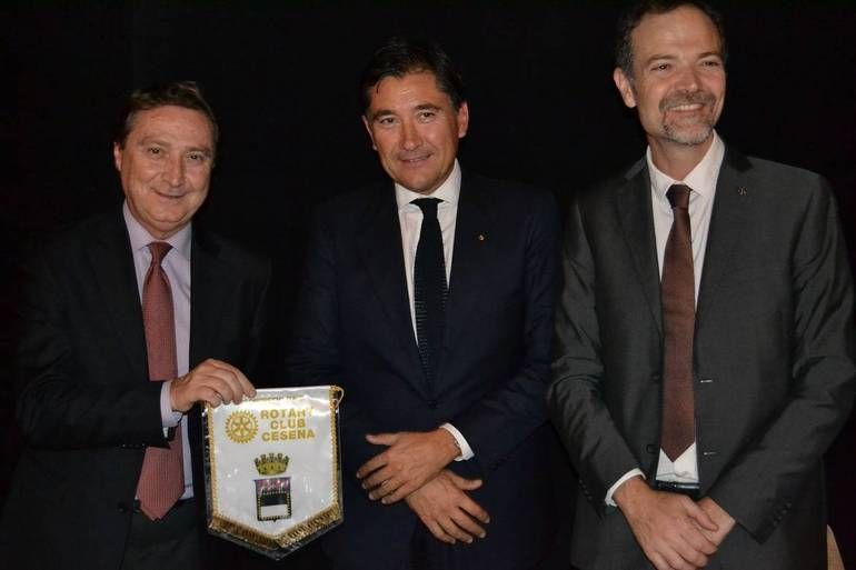 Al centro, Lorenzo Tersi, in una foto dello scorso anno, al Rotary club di Cesena del quale è socio. A destra il presidente del sodalizio Alessio Avenanti.