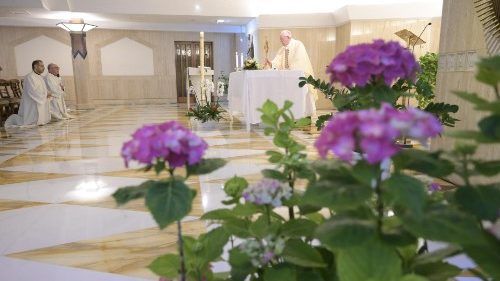 Nell’omelia il Papa ha commentato il Vangelo odierno (Gv 14,27-31) in cui Gesù dice ai suoi discepoli: «Vi lascio la pace, vi do la mia pace. Non come la dà il mondo, io la do a voi».
