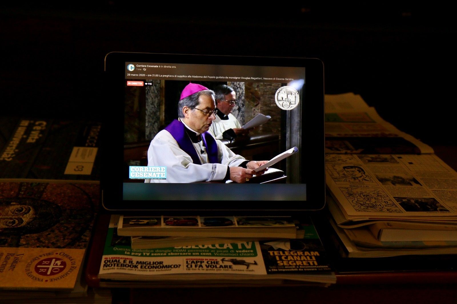 Ripeto che la celebrazione feriale e festiva della Santa Messa è permessa solo con poche persone (massimo 3-4 persone); sottolineo che la video trasmissione può aiutare i fedeli a stare in comunione non solo con il proprio parroco ma anche tra i fedeli della medesima parrocchia. Chiedo tuttavia che, almeno quella festiva, sia una celebrazione dignitosa e ben curata: anzitutto sia trasmessa ‘in diretta’ e non registrata; in questo modo è meglio favorita la ‘partecipazione’ che è molto di più di un semplice ‘assistere’, tanto meno un ‘vedere’ o ‘sentire’ la Santa Messa; con omelia, preghiera dei fedeli e il necessario servizio liturgico; e cioè: un lettore, un accolito o ministrante, un cantore e – dove è possibile – un organista. Sottolineo anche che a coloro che guardano la televisione o utilizzano altri supporti informatici è chiesta una ‘partecipazione’ convinta e continua, non distratta o parziale perché interrotta da altre incombenze.