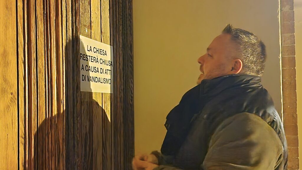 Per il parroco fra Marco Pellegrini, accorso subito sul posto dopo la segnalazione della custode, in base a come è stato danneggiato il Crocefisso, quasi decapitato, si tratterebbe di un “gesto compiuto con forza e di proposito“, non una caduta accidentale. “Sono molto dispiaciuto – afferma fra Marco -. Domani sporgerò denuncia ai Carabinieri“. Intanto, è stata presa la decisione di tenere chiusa la chiesa “a causa di atti di vandalismo”, come recitano due cartelli appena affissi dallo stesso parroco sulla porta della chiesa.