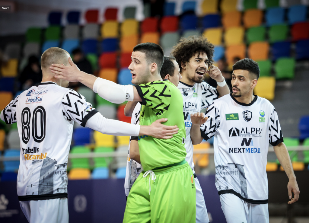 Al 13′ la Futsal Cesena gioca la migliore azione della sua partita: rimessa veloce da fondo campo, con Hassane che elude il pressing casalingo servendo Montalti, il quale giunge fino alla trequarti avversaria e trova sulla corsa Jamicic, che di punta spedisce il pallone sotto l’incrocio. A quel punto la manovra bianconera diviene inarrestabile e al 16′ c’è gloria anche per Venturini, imbeccato ottimamente da un preciso filtrante di capitan Pasolini.