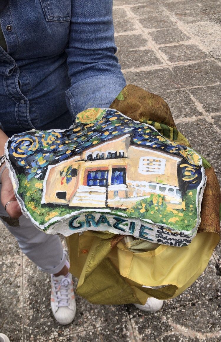 Per ringraziarli, i bambini e le bambine di Ronta hanno donato alla primaria ‘Ferri’ una zolla di fango decorata con le fattezze della propria scuola e la scritta ‘grazie’.