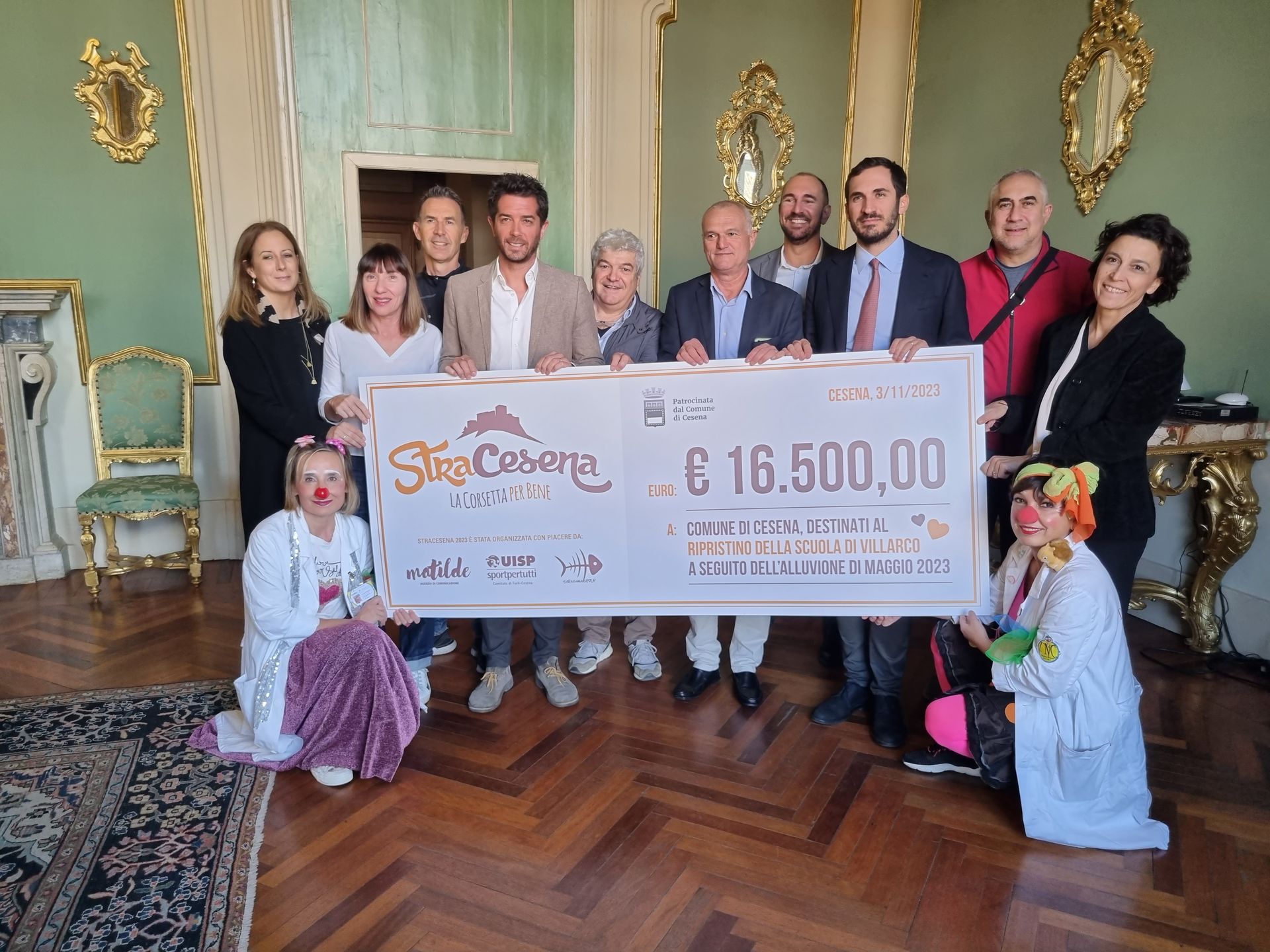 Nella sala degli Specchi del Comune di Cesena si è svolta la cerimonia ufficiale di consegna. Accanto al sindaco del Comune di Cesena Enzo Lattuca, erano presenti gli organizzatori dell’iniziativa – per Matilde Studio Luca Toni, per Saraghina Group Fabio Fabbri, per la Uisp Davide Ceccaroni – che hanno consegnato il maxi – assegno. Caloroso e soddisfatto anche il saluto dei tanti partner dell’iniziativa presenti, per l’importante contributo ricavato.