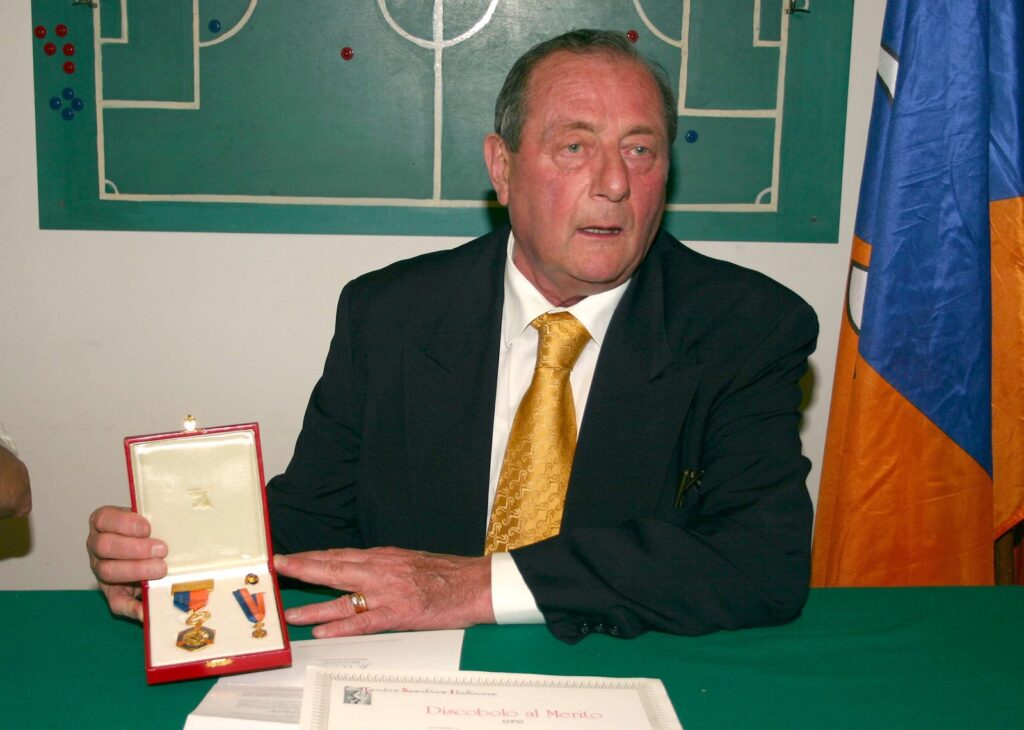 A Gilberto Manuzzi il comitato di Cesena del Csi conferì la massima onorificenza, quella del Discobolo d’oro. Gli venne assegnata il 13 giugno 2005, come si vede nella foto di Mauro Armuzzi, riportata qui sotto.