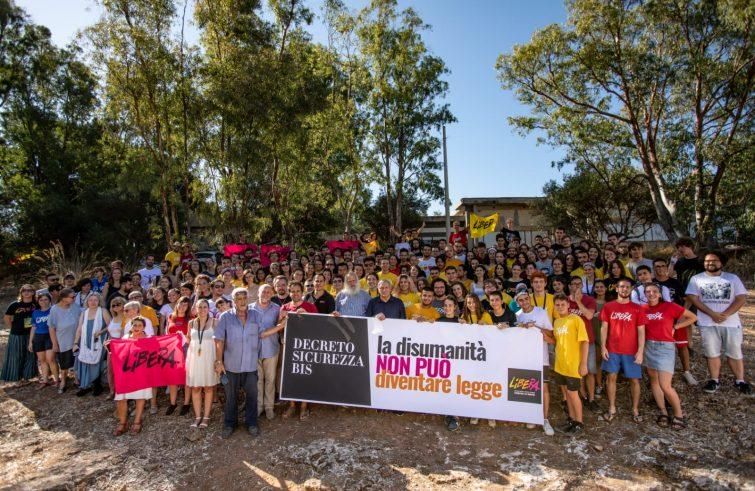 Uno striscione con scritto “La disumanità non può diventare legge”, un flash mob con oltre 200 giovani di Libera provenienti da tutta Italia riuniti a Trappeto (Pa) per il raduno nazionale per chiedere ai senatori di non votare il #decretosicurezzabis che arriva oggi in aula al Senato. E con il flash mob ieri è partita da Palermo una vera mobilitazione social di Libera che chiede ad associazioni, artisti, cittadini di scrivere su cartelloni, fogli, striscioni, sulla spiaggia “La disumanità non può diventare legge #decretosicurezzabis’ e di veicolare le foto sui social.