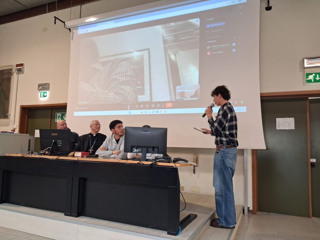 Questa mattina, nell’aula magna dell’istituto Comandini di Cesena, si sono confrontati l’arcivescovo Antonio Giuseppe Caiazzo, Guido Guastalla (comunità ebraica), Mohamed Ballouk (moschea Forlì) e Abouhassan Mrwan Magdy. All’incontro hanno preso parte 16 classi dell‘istituto Versari-Macrelli: 5F, 4Bss, 4Acs, 5Bcs, 5Bgr, 4G, 5I, 4Agr, 4I, 4E, 5Ass, 3Bss, 4Cgr, 3Cgr, 4Dgr, 5Agr.