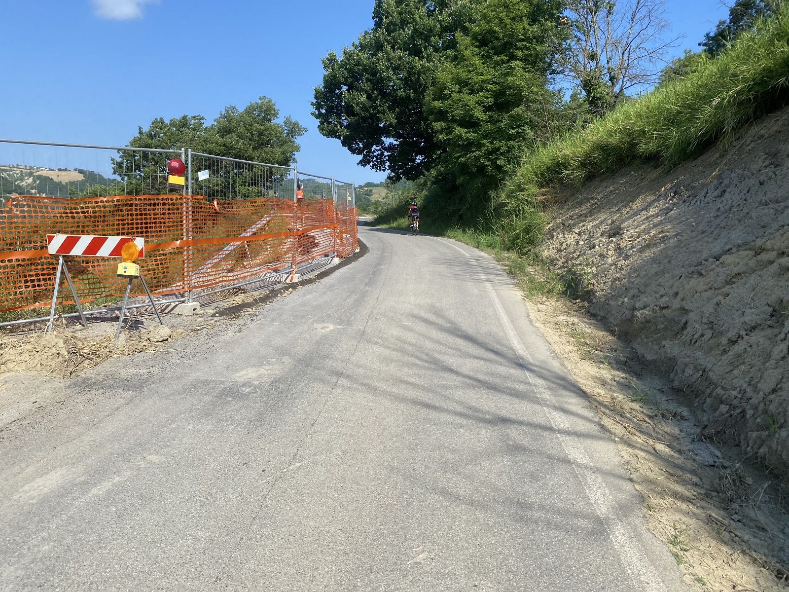 Lungo la stessa salita sono numerose le frane e gli smottamenti, come si può vedere nella foto qui sotto. Altre frane sono presenti sulla strada che passa da Stradone verso Ponte Uso e lungo la provinciale che da Sogliano, lungo tutto il crinale, porta fino a Savignano sul Rubicone. Al momento le frane sono tutte in sicurezza, ma le ferite inferte al territorio sono ancora tutte aperte.