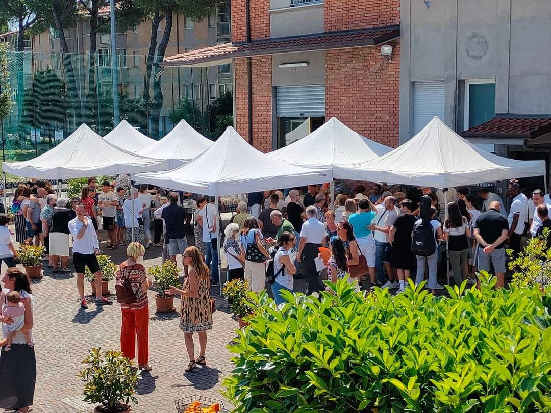 Nella foto qui sopra, un momento della festa nel cortile della parrocchia