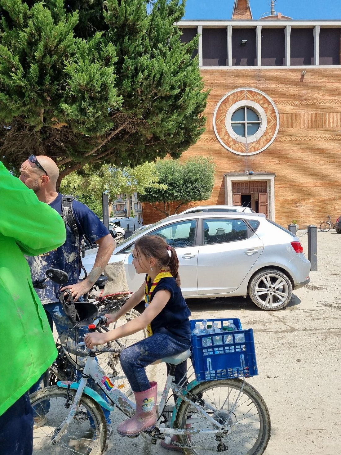 Un grande secchio d’acqua all’ingresso della chiesa. A cosa serve? A pulirsi (parola grossa…) i piedi dai ‘zaccharoni’ di fango che abbiamo ai piedi tutti, oggi, davanti alla chiesa della parrocchia di San Rocco. Lì, tra il Savio e il Ponte Vecchio, crocevia di strade, di villette familiari, di destino e di fatica. E brulicare di solidarietà.