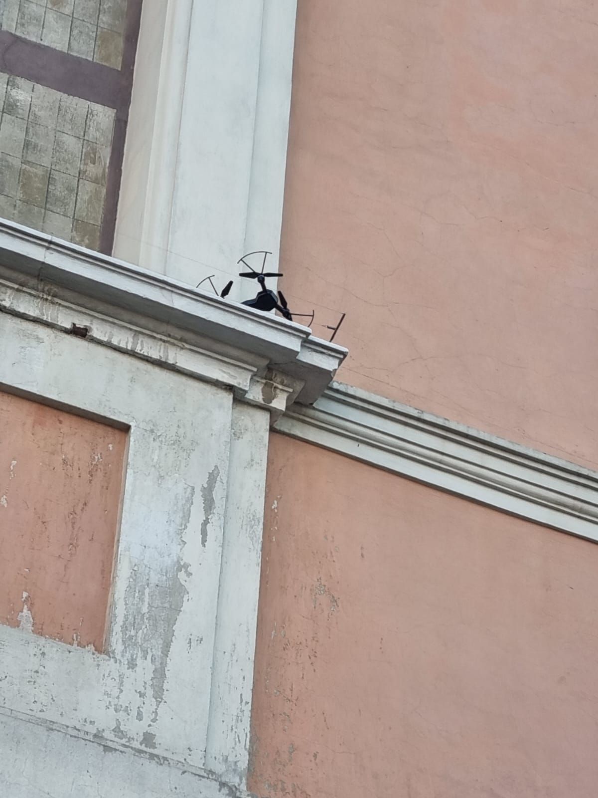 Nel frattempo, i Vigili del Fuoco non sono riusciti a portare in salvo il drone perché sprovvisti di una scala abbastanza lunga per raggiungere il primo piano dell’edificio. Hanno potuto così solo transennare l’area per garantire la sicurezza dei passanti.