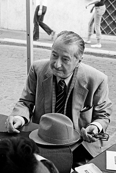 Sante Pedrelli (nella foto di Sandra e Urbano fotografi a Cesena), nato a Montilgallo, il 28 aprile 1924. Pedrelli ha frequentato il liceo Monti di Cesena e ha compiuto gli studi di lettere moderne nelle università di Bologna e Roma, dove ha anche seguito i corsi per assistente sociale della scuola CEPAS diretta da Guido Calogero. È stato un importante sindaco di Longiano dal 1951 al 1958 (fautore della ricostruzione di Longiano dopo il conflitto mondiale) e ha svolto l’attività di dirigente sindacale CGIL a Cesena, Forlì e Roma. Riconosciuto come importante poeta, ha pubblicato poesie in dialetto romagnolo nelle riviste: La Piê, Il lettore di provincia, Diverse lingue, Periferie, Graphie, Confini. Le sue poesie sono inserite anche nelle antologie Cento anni di poesia dialettale romagnola (Imola, Galeati, 1976), Le radici e il sogno. Poeti dialettali del secondo ‘900 in Romagna (Faenza, Mobydick, 1996), D’un sangue più vivo. Poeti romagnoli del Novecento (Cesena, Il Vicolo, 2014) e nel volume I volti delle parole di Daniele Ferroni (Longiano, Fondazione Tito Balestra, 2014). É morto l’11 novembre 2017 a Roma, dove viveva dalla fine degli anni Sessanta. Nel 2021 le edizioni Tosca hanno pubblicato l’antologia Canifos, a cura di Maurizio Balestra e Giorgio Paganelli, con introduzione di Gianfranco Camerani. Importantissimo per la sua formazione, artistica, letteraria e anche politica, il rapporto con l’amico Tito Balestra con il quale ha condiviso prima gli anni della giovinezza a Longiano per proseguire poi i rapporti dopo il trasferimento di entrambi a Roma.