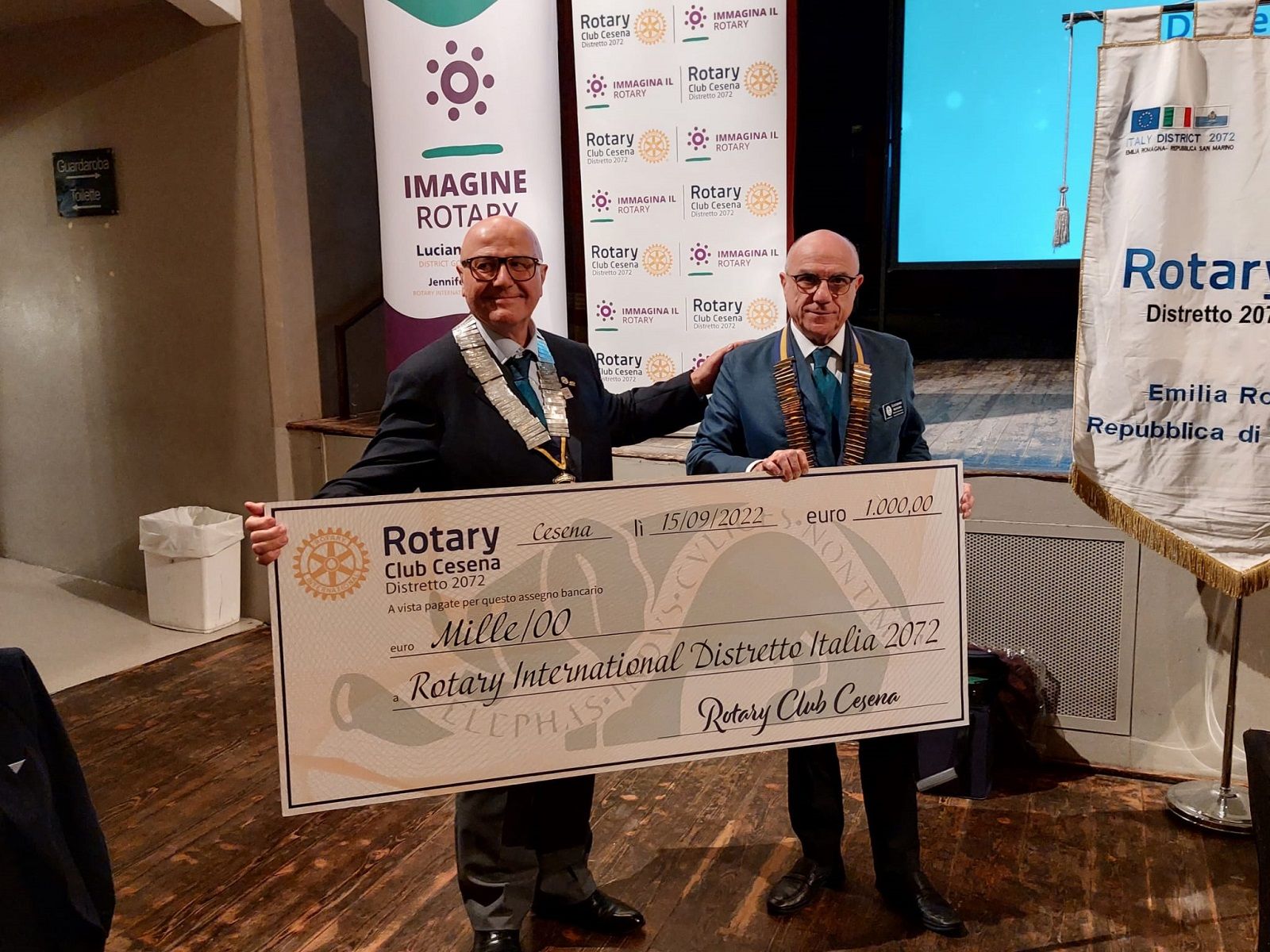 A sinistra il presidente del Rotary di Cesena Paolo Montalti con il governatore Luciano Alfieri (foto di Alessio Avenanti)