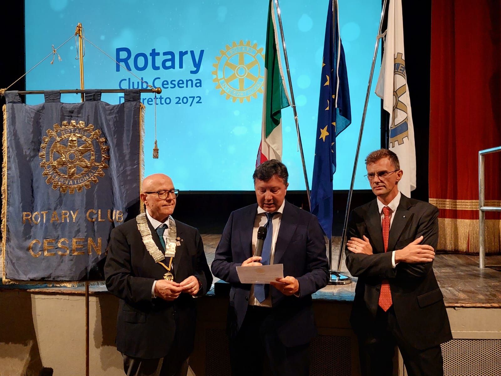 A siglare il loro ingresso ufficiale nel sodalizio è stata la cosiddetta cerimonia di spillatura con il dono della spilla con la classica ruota rotariana, simbolo di un organismo complesso caratterizzato da una forte sinergia interna. Nell’occasione il governatore Alfieri ha stimolato all’impegno i rotariani cesenati perché donino un po’ del loro “preziosissimo tempo a chi è meno fortunato” e ha elencato le tappe di alcuni importanti progetti di solidarietà che animano il Club internazionale, al cui vertice, per la prima volta a 117 anni dalla sua nascita, c’è una donna, la canadese Jennifer Jones, e distrettuale, Emilia-Romagna e Repubblica di San Marino. Tra questi la campagna, che coinvolge dieci Club Rotary in Italia, per la spedizione di 570 mila pasti a 2.850 bambini dello Zimbabwe le cui famiglie, supportate dall’invio di cibo la cui carenza rappresenta oggi una drammatica emergenza, possono investire in educazione per i propri figli.