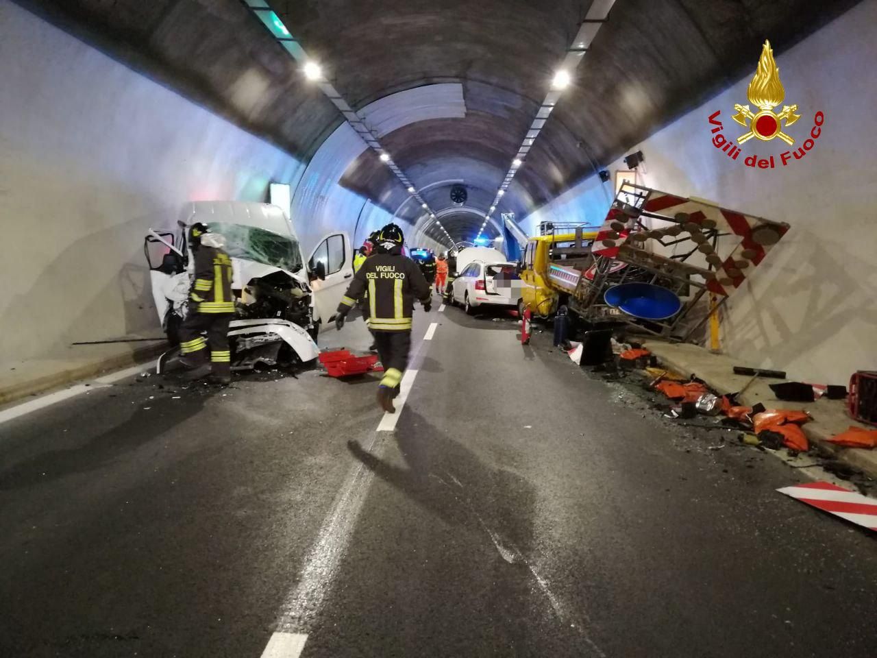 I Vigili del fuoco, intervenuti con una una squadra del Distaccamento Vigili del Fuoco di Cesena ed una del distaccamento Vigili del Fuoco volontari di San Seprolcro (Arezzo), fanno sapere che nello scontro sono rimasti coinvolti una piattaforma area e un furgone che svolgevano lavori all’interno della galleria, un furgone e un’autovettura.