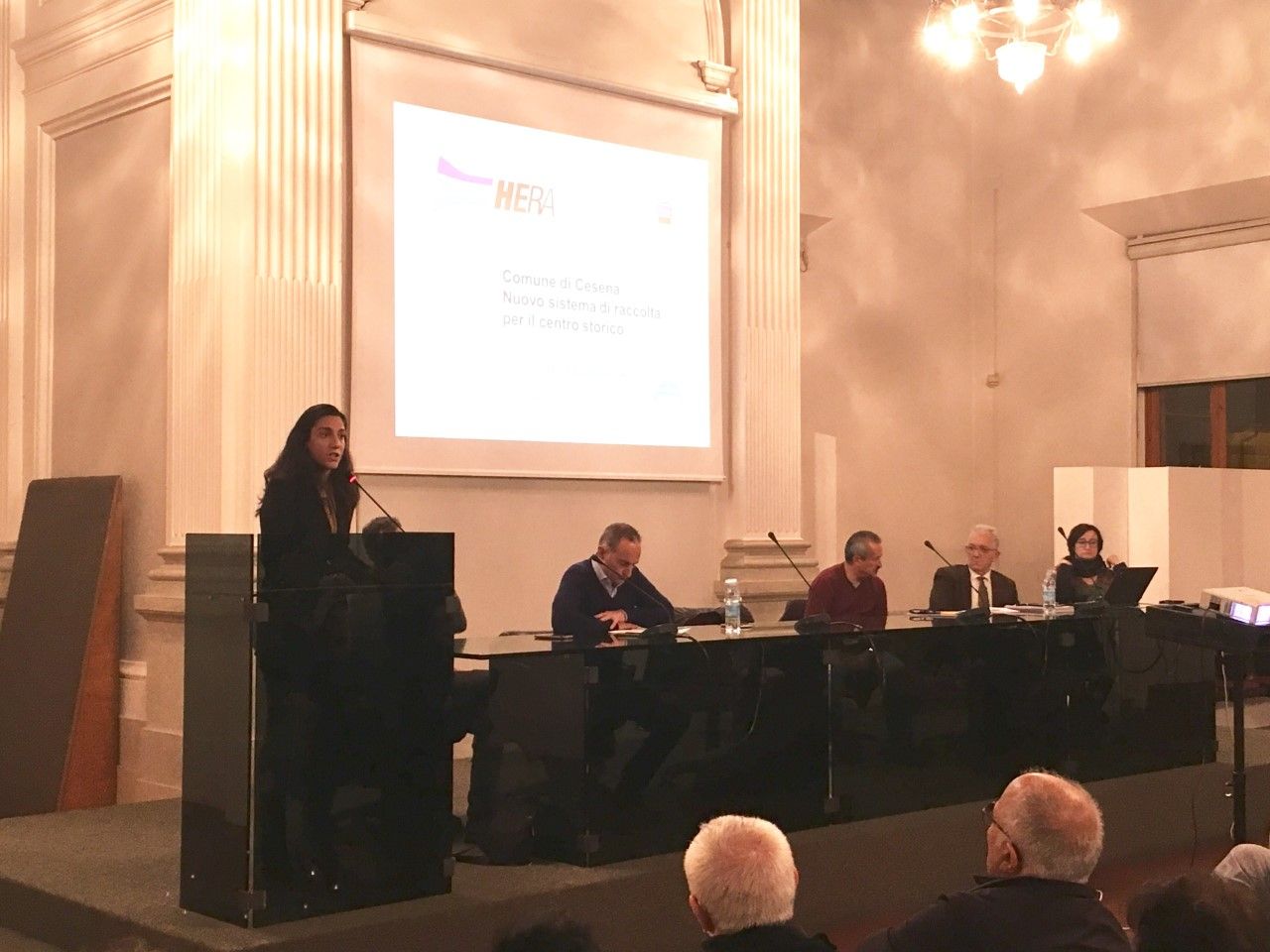 Sono 1700 le utenze da oggi sono coinvolte da “Ecoself”, il nuovo sistema di raccolta rifiuti costato all’amministrazione comunale 70 mila euro e che fa il suo ingresso nel cuore del centro storico di Cesena fino al 31 dicembre in forma del tutto sperimentale. Dopo questa prima fase transitoria, i contenitori itineranti entreranno in vigore a gennaio 2019. Intanto, per chiarirne il funzionamento l’assessore alle politiche ambientali Francesca Lucchi e i funzionari di Hera nella serata di ieri, lunedì 12 novembre, nella sala riunioni del Palazzo del Ridotto hanno incontrato residenti, esercenti e commercianti ambulanti per cogliere perplessità e disagi e per dar loro risposte concrete.