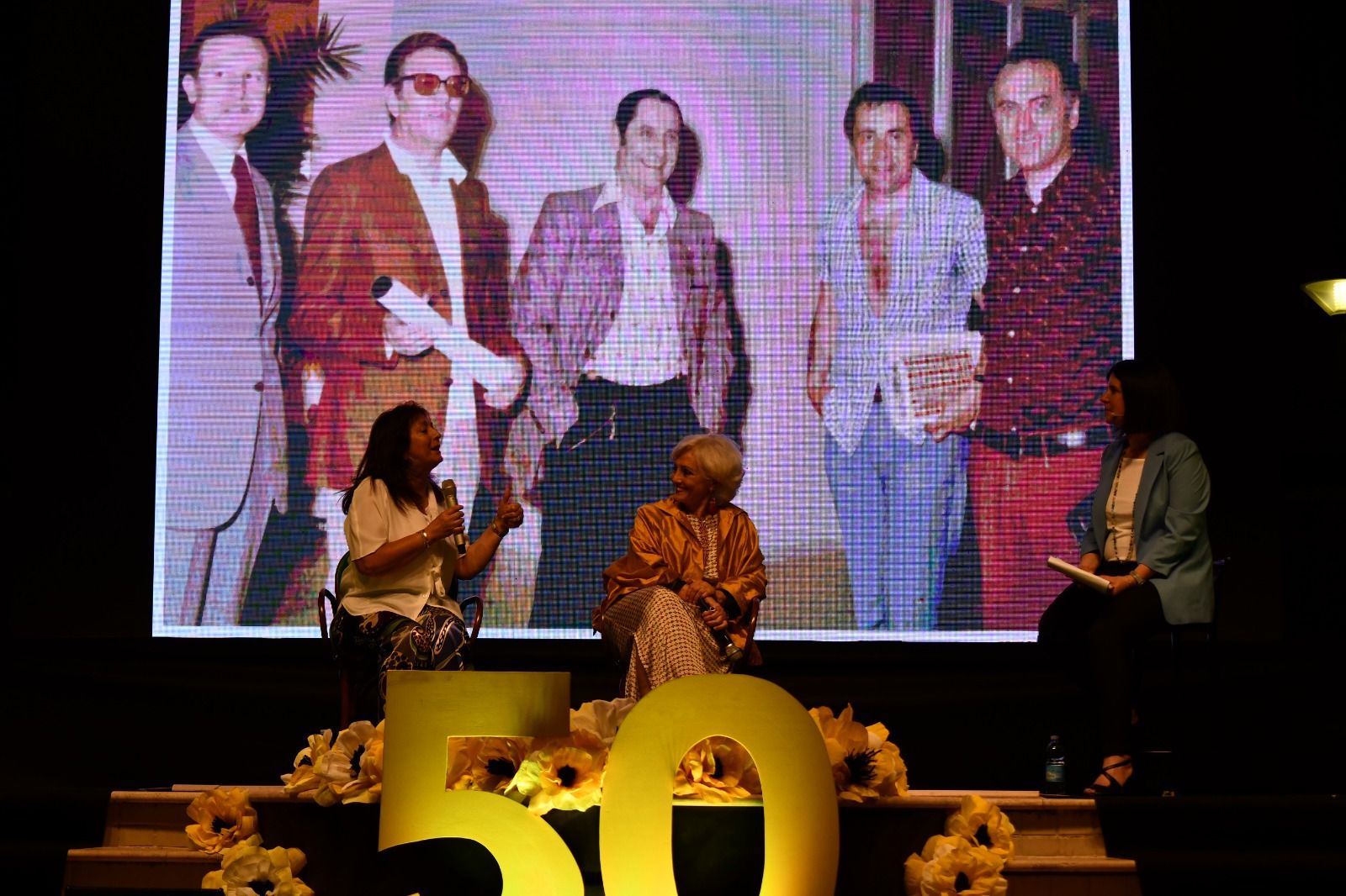 Nella foto, un momento della serata di ieri. Sul palco la direttrice del festival Simonetta Salvetti con Francesca Scopelliti, di fianco Simona Mulazzani, nella slide Enzo Tortora nel 1973 in riunione a Cattolica, per la prima edizione del Gran Giallo