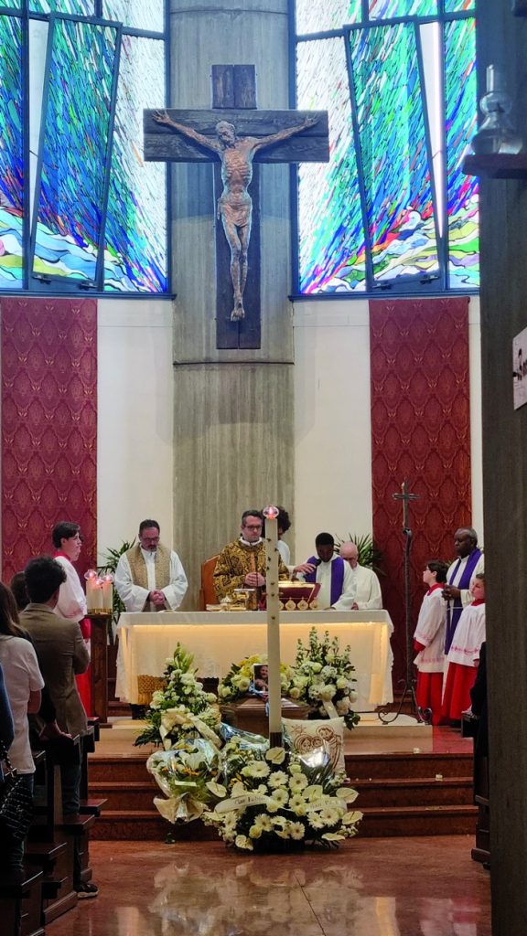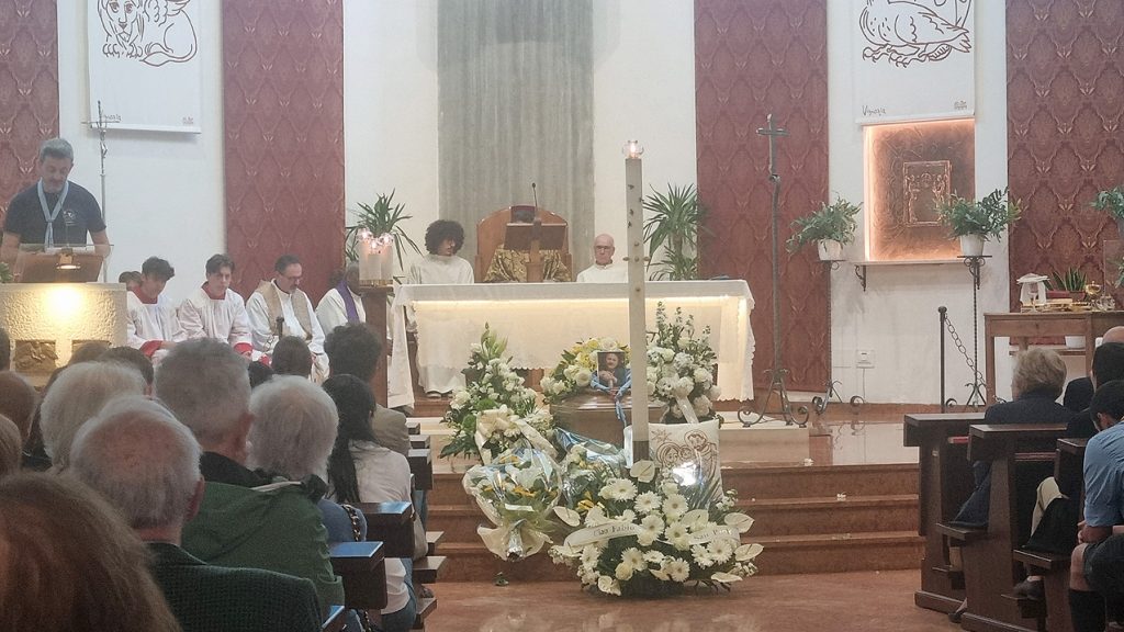Tantissimi gli scout, giovani e adulti, con divisa e fazzolettoni alla Messa celebrata dal parroco don Simone Farina. All’altare anche don Paolo Pasolini parroco di San Rocco, padre Dickson Simon e padre Egidio Seneda, della comunità dei Missionari del Preziosissimo Sangue che animano la parrocchia di Santa Maria della Speranza.