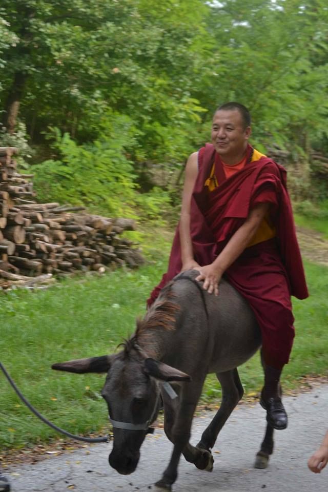 Al termine la recita dell’”Eterno riposo”, la brevissima e semplicissima preghiera cattolica per i defunti. Il Lama Alak Tulku Rinpoche, del buddhismo tibetano, ha celebrato la cerimonia di purificazione della montagna. Sewa Singh ha guidato le preghiere dei numerosi Sikh sul luogo della cremazione degli oltre 200 indiani del Punjab caduti, accompagnate dalle struggenti note della cornamusa. Nel pomeriggio la passeggiata della Pace con gli asinelli del Pagliaio (nella foto il Lama Alak Tulku Rinpoche in groppa a un asinello durante una delle precedenti commemorazioni).