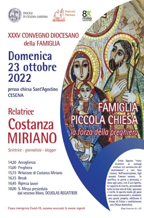 Si terrà nel pomeriggio di domenica 23 ottobre nella chiesa di Sant’Agostino, in centro a Cesena, il 35esimo Convegno diocesano della famiglia.