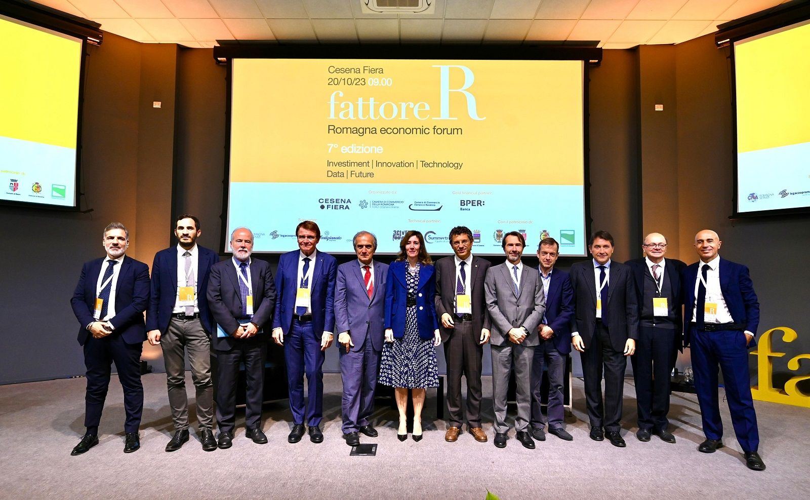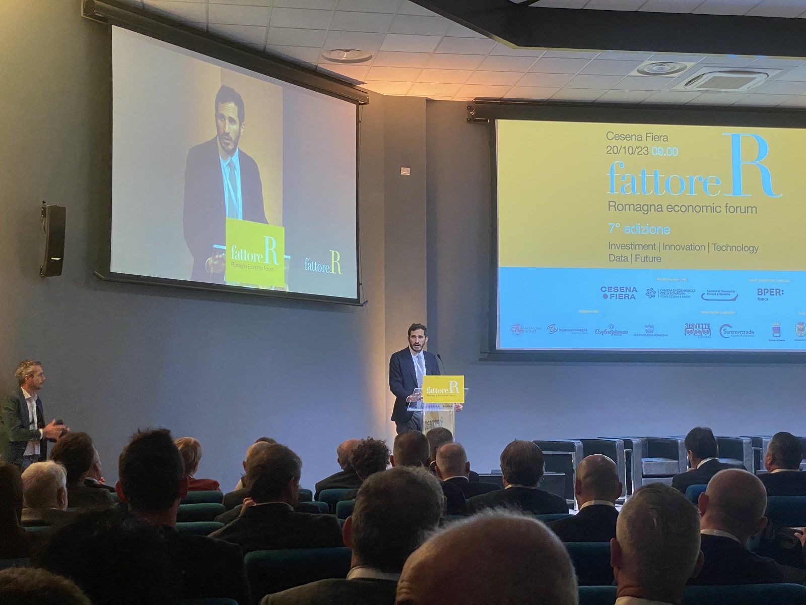 È terminato da poco nei locali di Cesena fiera la settima edizione di Fattore R, il forum dedicato all’economia della Romagna, condotto dal giornalista Gianluca Semprini. Tutti esauriti i 300 posti della sala Europa, con tantissime personalità presenti e molti imprenditori del territorio. Presenti anche alcune decine di studenti del liceo economico del “Monti” di Cesena.