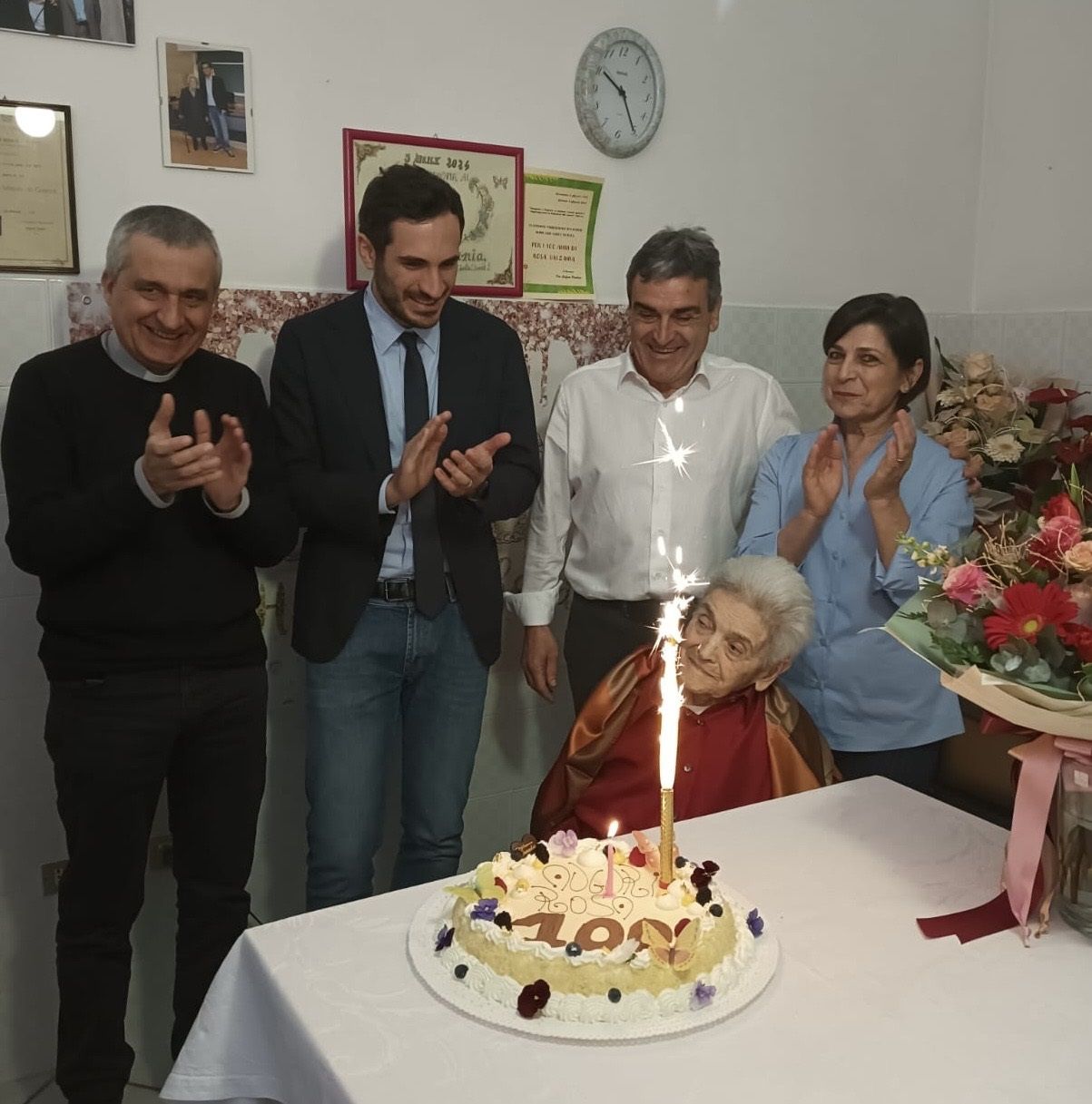 Per l’occasione le hanno portato gli auguri il parroco don Stefano Pasolini (nella foto qui sotto) e il sindaco Enzo Lattuca (foto in basso).