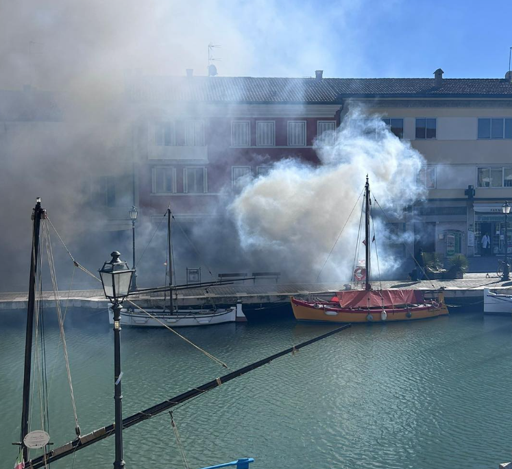 Incendio in un’attività commerciale a Cesenatico, lungo il Porto Canale.