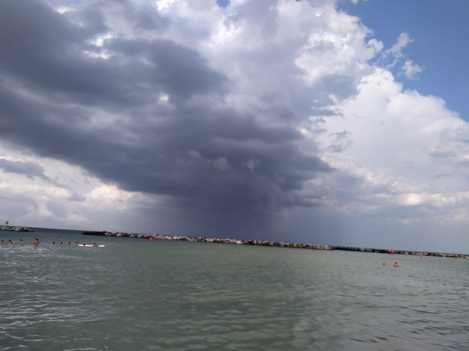 Gli ombrelloni sono stati fatti chiudere e la gente è fuggita e ha trovato rifugio all’interno degli stabilimenti balneari.