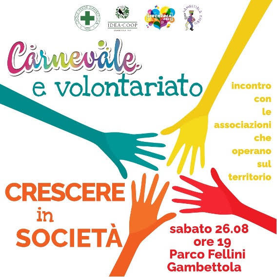 “Crescere in società” è il titolo dell’incontro, voluto dall’associazione Gambettola Eventi e dalla Croce Verde di Gambettola, in collaborazione con l’Amministrazione comunale e Idea Coop, per valorizzare e confermare le collaborazioni, le attività e le azioni che sorgono nel corso dell’anno con il Carnevale di Gambettola, grazie all’apporto di tanti volontari.