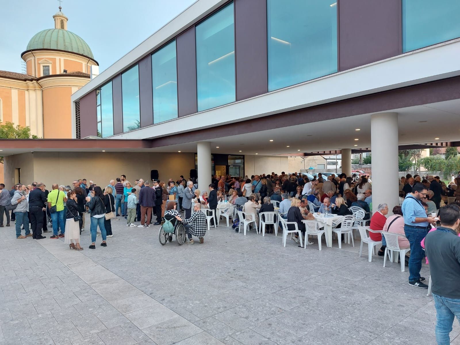 La festa è poi proseguita nei locali del Fulgor, con un momento conviviale (foto qui sotto) durante il quale è stato fatto un brindisi di benvenuto ed è stata eseguita una canzone dedicata al nuovo parroco.