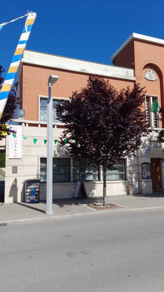 Questa mattina, sulla facciata di ingresso del centro culturale Fellini, sede della Biblioteca Comunale, in corso Mazzini 75, è stato srotolato lo striscione con scritto “Ripudia” per ribadire il no alla guerra scritto all’interno della Costituzione