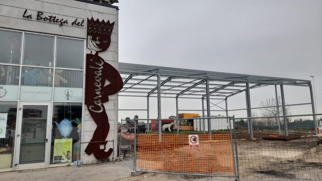 In via Guglielmo Marconi, di fianco a quello esistente della Bottega del Carnevale che ospita anche la Scuola di Cartapesta, è in fase di realizzazione un nuovo capannone con struttura in acciaio già predisposta. Si tratta di una struttura di proprietà dell’associazione Gambettola Eventi, che ha deciso di investire circa 150mila euro dove aver ricevuto regolari permessi dal Comune di Gambettola, proprietario dell’area. I lavori in corso d’opera, che dovrebbero termine entro fine marzo 2025, sono eseguiti dalle ditte Cps di Maraldi e Fratelli Pieraccini su progetto del geometra Michael Beaulardi, carrista dei Giovani tonici.