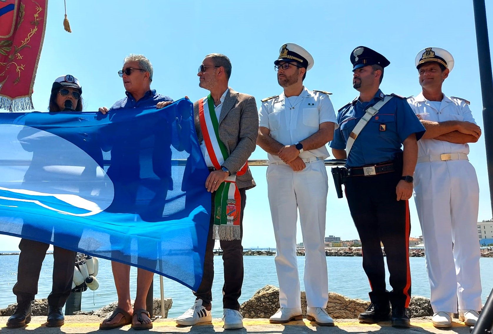 Si è tenuta questa mattina al pontile Foce Rubicone la consegna della Bandiera blu alla spiaggia di Gatteo Mare. La Bandiera blu è stata consegnata al presidente della Cooperativa bagnini di Gatteo Mare Massimo Bondi, insieme a una rappresentanza dei bagnini di salvataggio della località balneare e poi issata alla foce del Rubicone. Lo rende noto alla stampa il Comune di Gatteo.