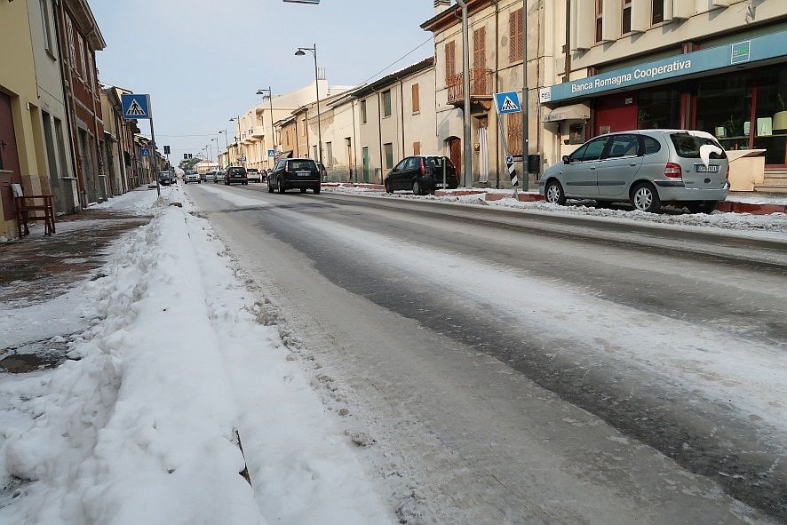 Ghiaccio in strada. La via Cesenatico è da percorrere con cautela