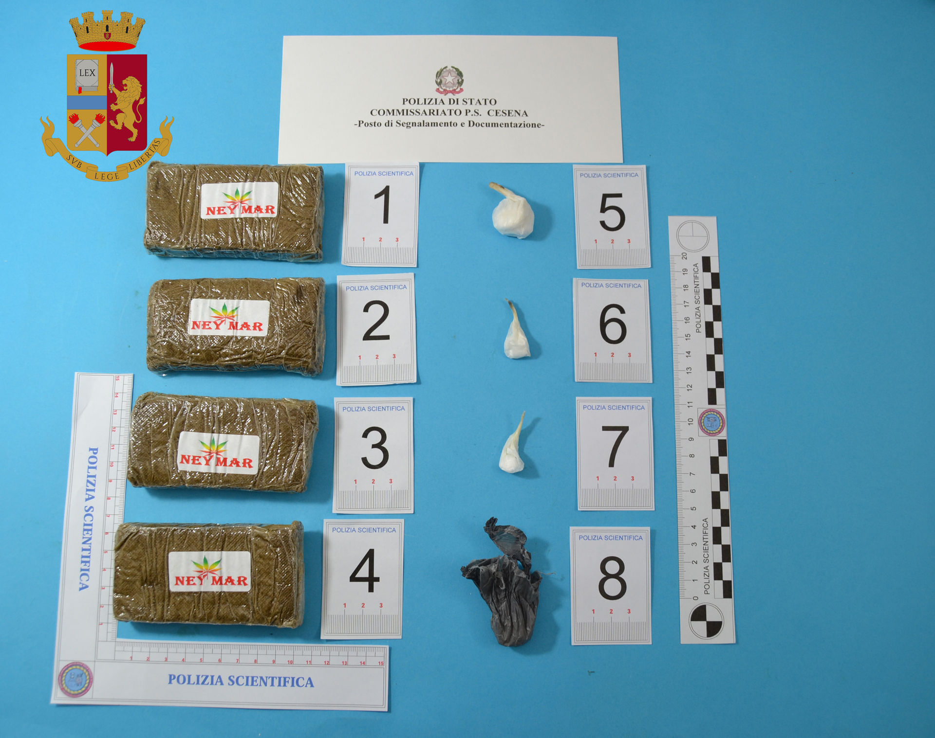 Accompagnata la vittima al pronto soccorso (prognosi di 15 giorni per le lesioni patite), gli agenti notavano però tra gli effetti personali della donna due grammi di cocaina. Perquisita, alla stessa venivano trovati altri 800 euro di provenienza ingiustificata, essendo la stessa disoccupata. Perquisendo l’abitazione dei genitori della donna, che hanno dato piena collaborazione alle Forze dell’ordine, gli agenti hanno rinvenuto altri quattro grammi di cocaina e ben quattro panetti di hashish da un etto l’uno. A quel punto anche la vittima dell’aggressione è stata arrestata, con l’accusa di detenzione ai fini di spaccio di sostanza stupefacente.