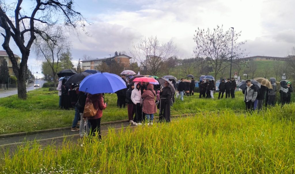 Dall’Osservanza partono i giovani della Zona urbana, dopo un momento di preghiera in chiesa guidato dal parroco don Fabrizio Ricci. “Siamo molto felici di essere qui nonostante la pioggia – dice Jacopo, 13 anni, della parrocchia di San Rocco -. Vogliamo vivere insieme questo momento. La curiosità nei confronti del nuovo vescovo è tanta“.