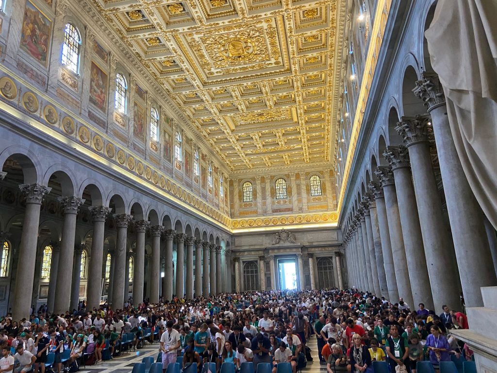 Oggi pomeriggio, il gruppo di Cesena-Sarsina, assieme agli altri dell’Emilia-Romagna, ha fatto tappa alla basilica di San Paolo fuori le mura per la Messa e il momento penitenziale. In totale c’erano più di 1.600 giovani. Con loro è arrivato anche il vescovo Antonio Giuseppe Caiazzo.