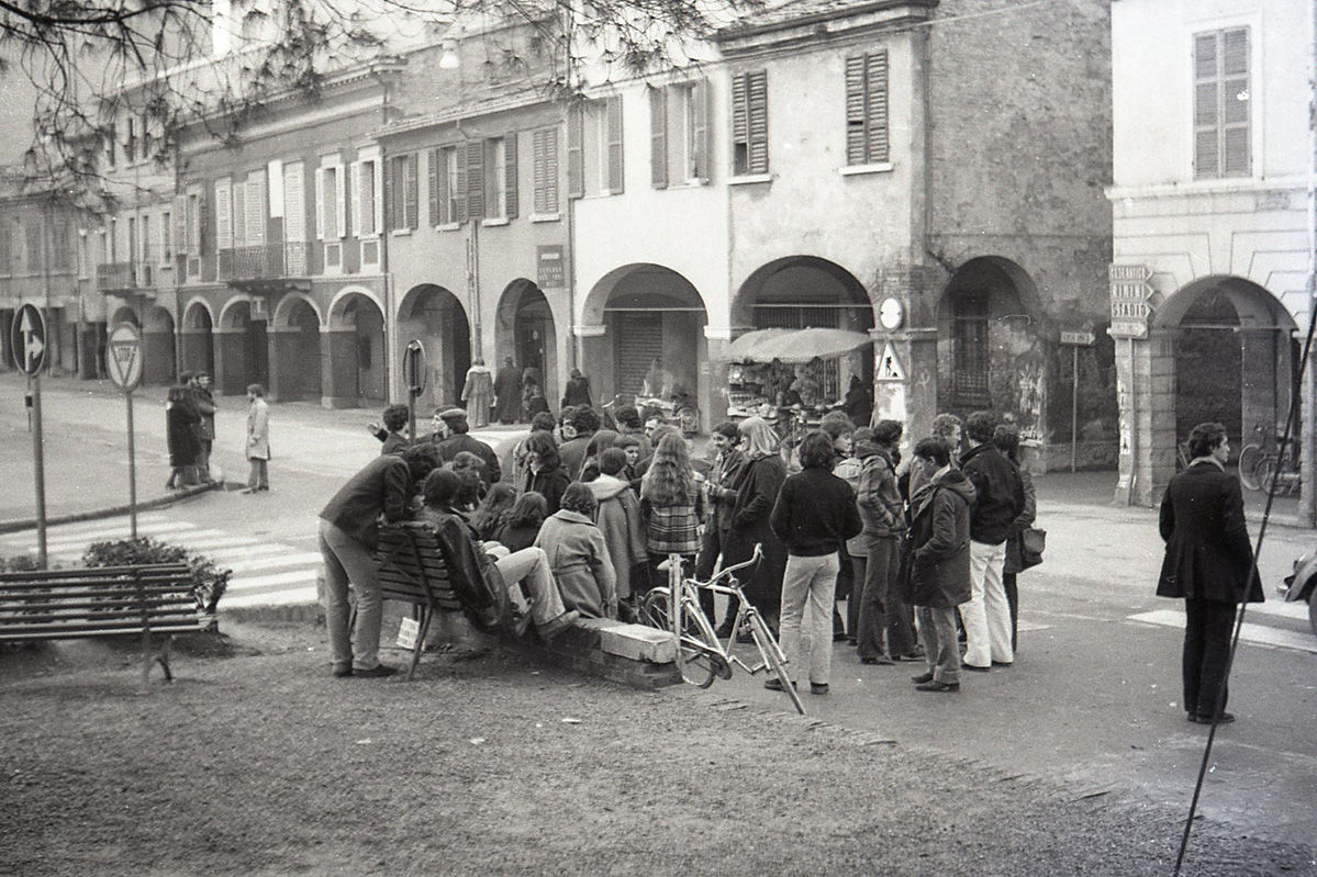 “Compagni” è il tema conduttore di quegli anni in cui era intensa la partecipazione politica dei giovani: Il bar dei giardini era infatti il punto di ritrovo dei simpatizzanti e degli attivisti di alcuni gruppi extraparlamentari di allora. La mostra racconta e documenta anche manifestazioni politiche del centro di Cesena. Come scriveva Cesare Pavese, “Ogni luogo è stato qualcosa per qualcuno“.