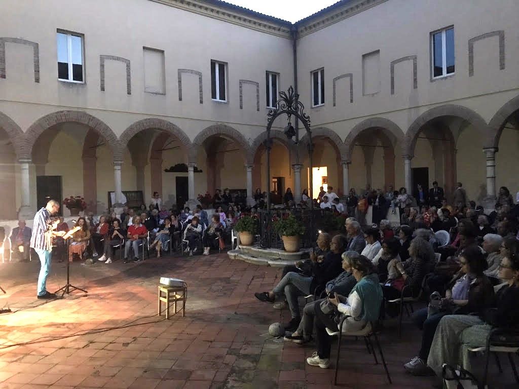 Martedì sera 6 giugno si è svolto nel chiostro dell’Abbazia del Monte di Cesena un evento di grande suggestione, artistica e umana. Un recital che ha visto unite tutte le arti: gli ex voto, la letteratura e la musica.