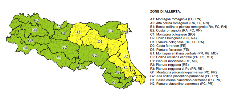 Per la giornata di domani, sabato 15 febbraio, il servizio regionale di Protezione civile ha emesso un’allerta gialla per criticità idraulica nelle pianure centrali e romagnole. Si prevedono precipitazioni deboli sull’Appennino orientale, con quota neve intorno a 500 metri, già in esaurimento nelle prime ore del mattino. Nei settori centro-orientali non si escludono residui fenomeni di ruscellamento e fenomeni franosi sui versanti più fragili. La criticità idraulica è riferita alla propagazione della piena nei tratti vallivi. Si prevedono condizioni di mare agitato con altezza dell’onda tra 2,5 e 3,2 metri in attenuazione nella seconda parte della giornata. Non si escludono localizzati fenomeni di erosione dei litorali, in particolare sulla costa romagnola. Tempo in miglioramento nella giornata di domenica 16 febbraio.