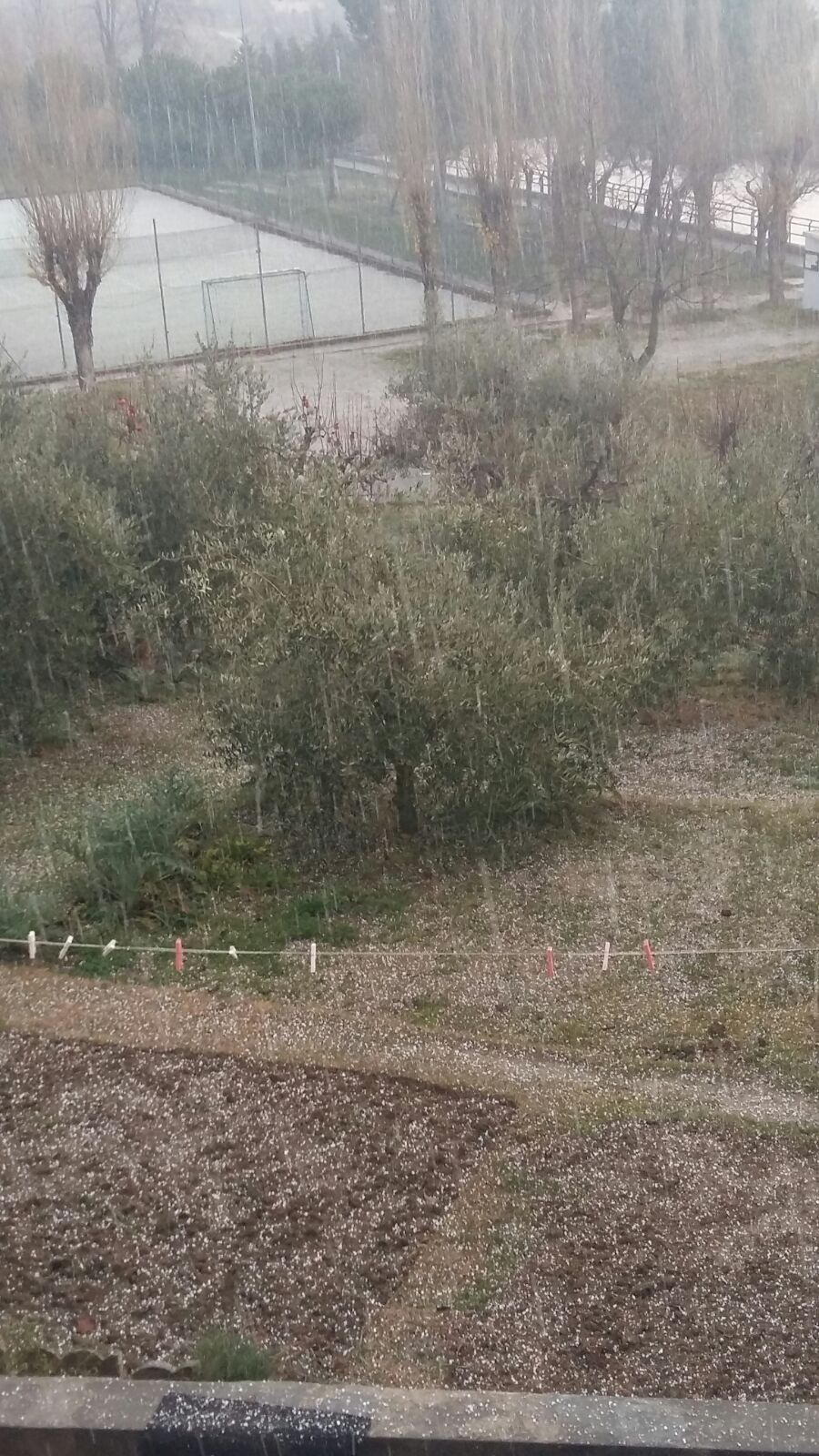 Tempo variabile è dire poco oggi a Longiano che qualche minuto fa è stata investita da una veloce burrasca con grandine, breve ma sufficiente a coprire di bianchi granellini il selciato e i campi.