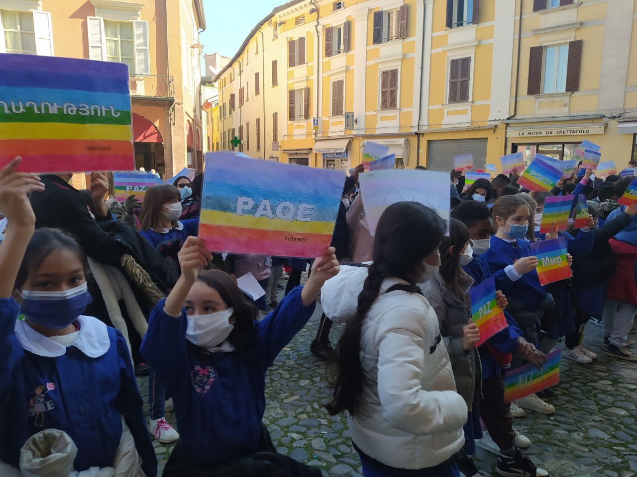 I bambini della primaria Carducci in piazza per chiedere la pace